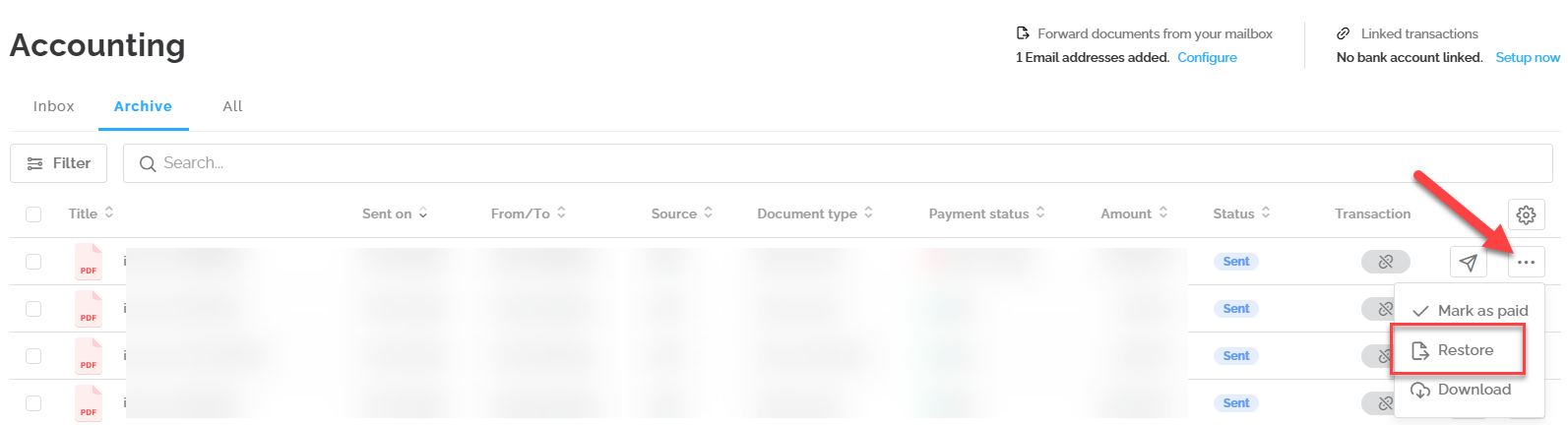 - Archive = Documents that have been sent to your accountant and subsequently archive