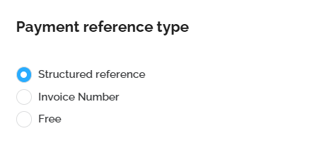 In the “Payment reference type” section, you can indicate whether you want to add a structured communication to your invoice.