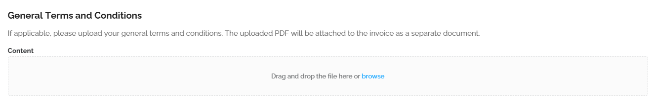 You can upload your terms and conditions as a PDF file so that they can be sent as an attachment along with the invoice.