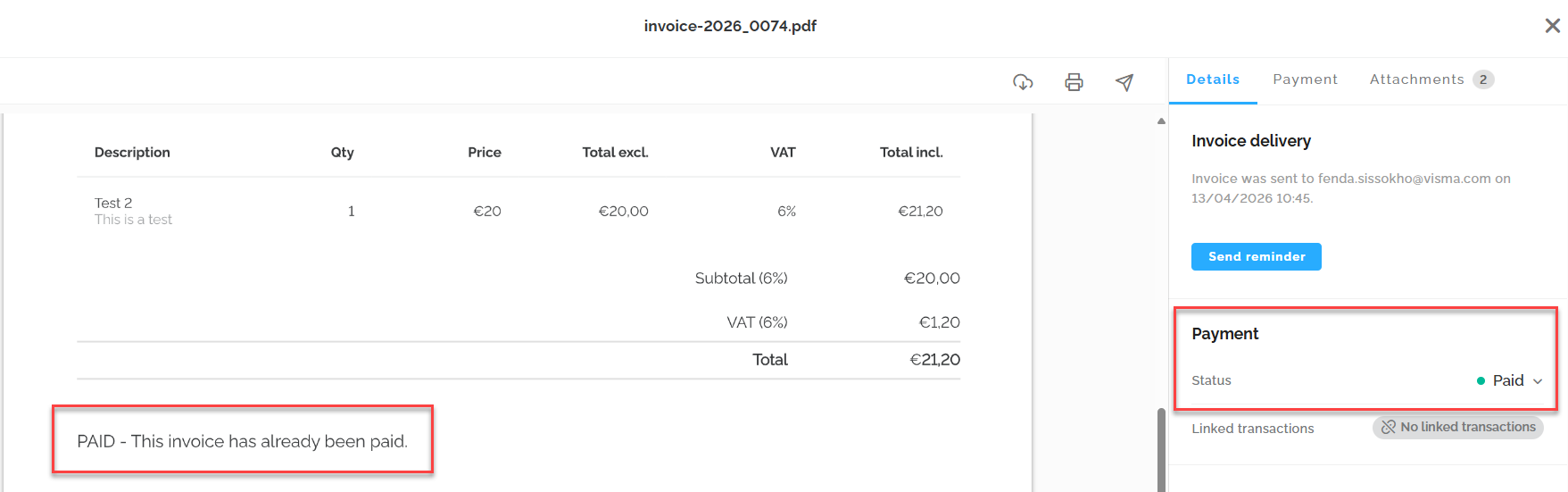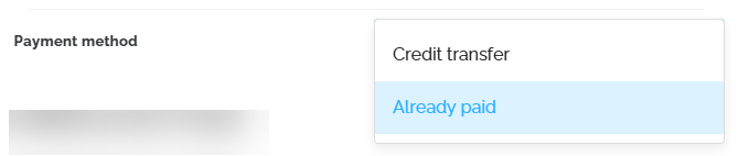 - 'Already paid' method: When you select this option, the invoice will clearly state that the amount has already been settled. Once the invoice is sent, its payment status will also automatically be updated to 'Paid'. This is useful for invoices that have already been paid by card or in cash.