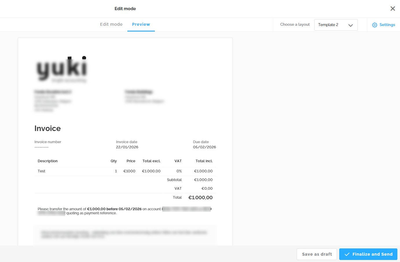 Once the invoice is ready, you can save it as a draft or finalize and send it.