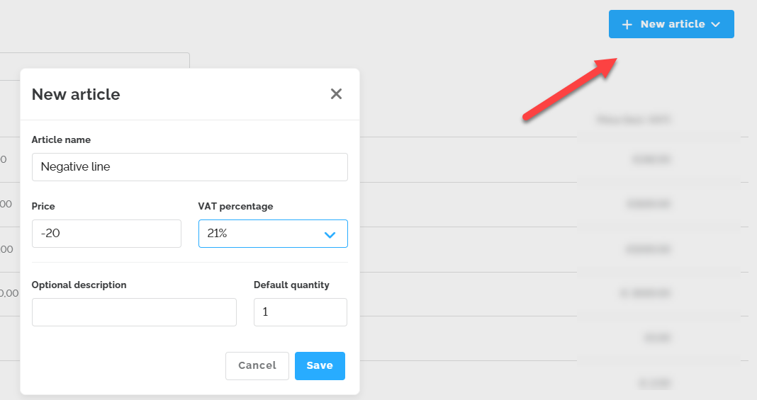 From the Invoices overview, you can click the ‘New invoice’ button to create an invoice or a credit note.