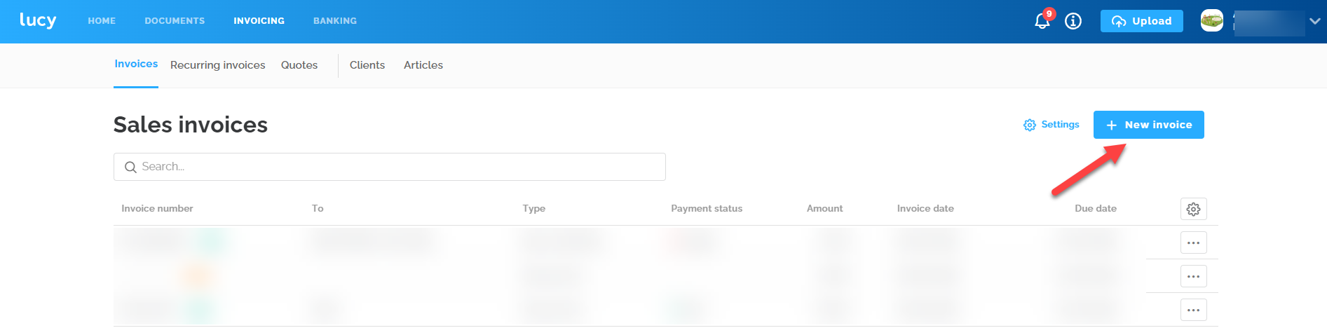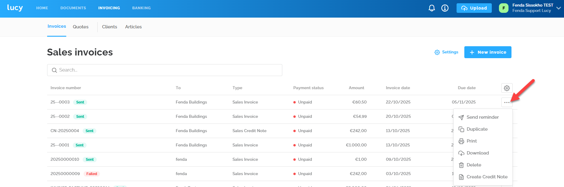 Important to note: In Lucy, it is not possible to create test invoices or credit notes, also not during the trial.