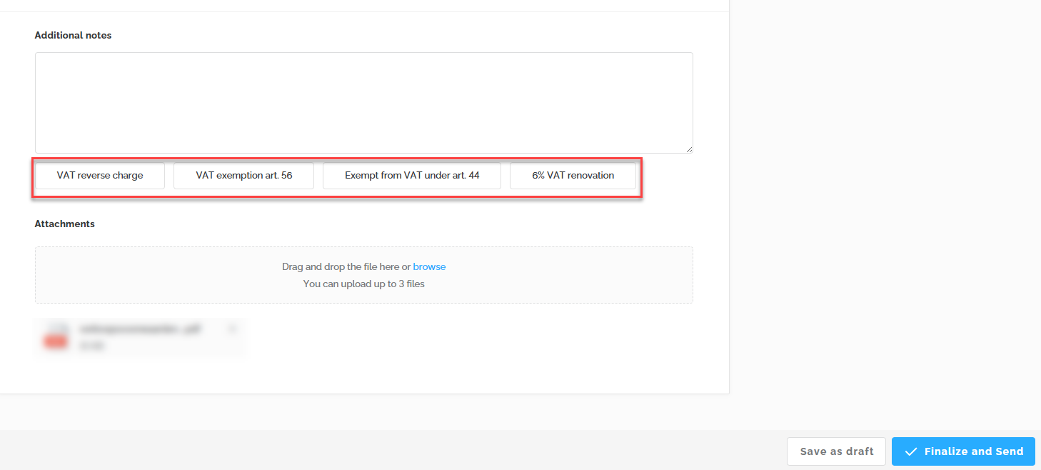 You can also add attachments to your invoice. You have the option to add up to three PDF documents, each of which must not exceed 2 MB.