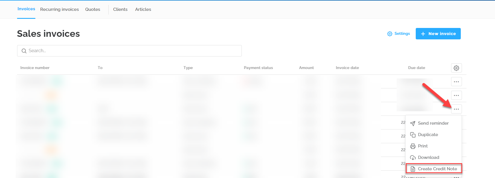 You can create invoices or credit notes from the Billing tab via the Invoices overview.