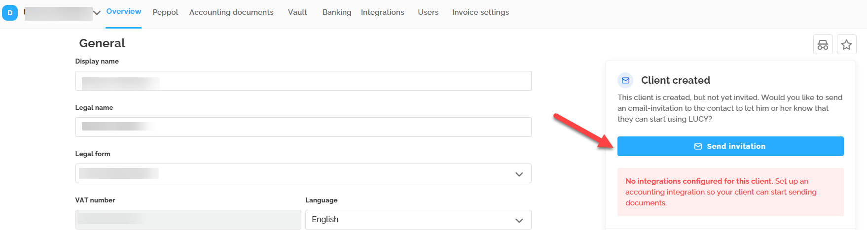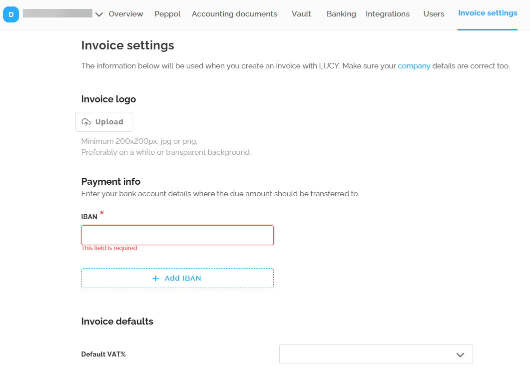 In the invoice settings, you can help your customer configure the necessary options to start invoicing in Lucy.