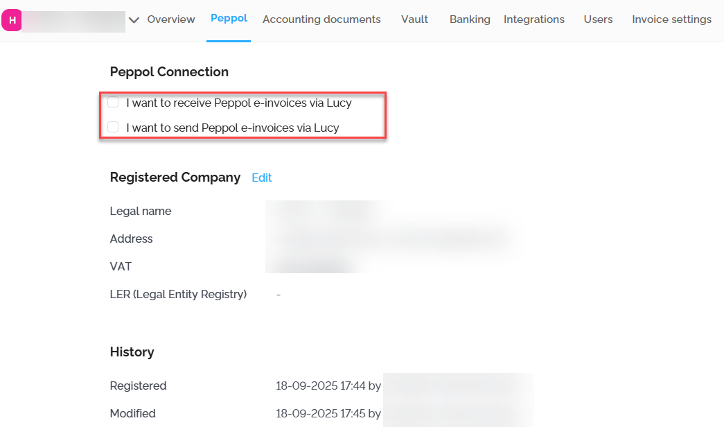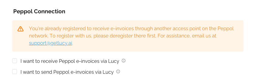 You can unsubscribe the company from the Peppol network at any time via Lucy by unchecking the boxes.Change Contact Person