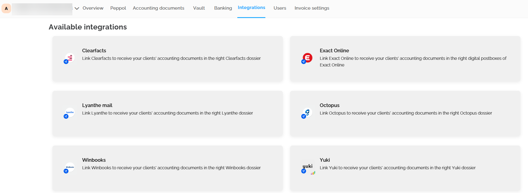- Connect with accounting software through existing integrations so that documents can be sent to the accounting software. It is possible to connect with one accounting package.