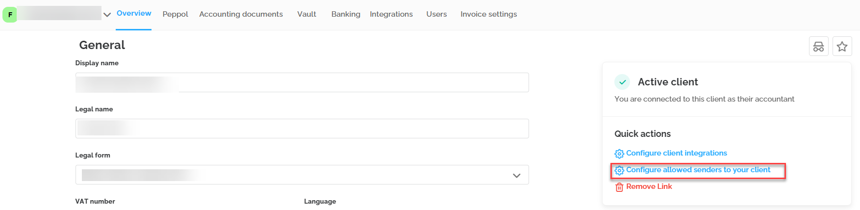 - Activate the Peppol connection