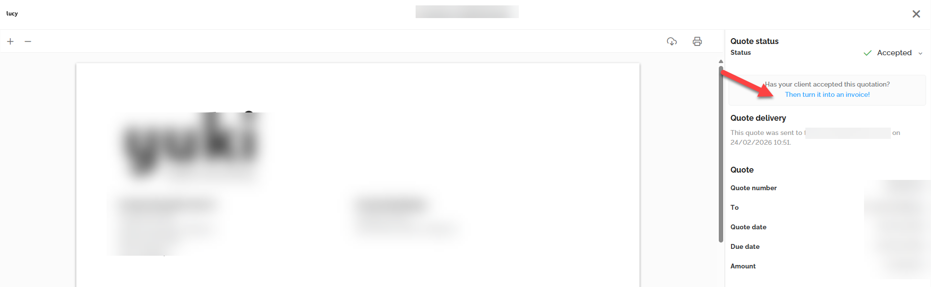 - Convert the quote into an invoice