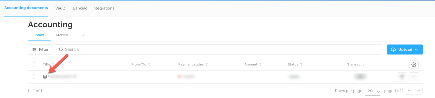 You can check whether the document type has been recognized by looking at the icon shown below. For purchase invoices, a downward arrow will appear, and for sales invoices, an upward arrow.