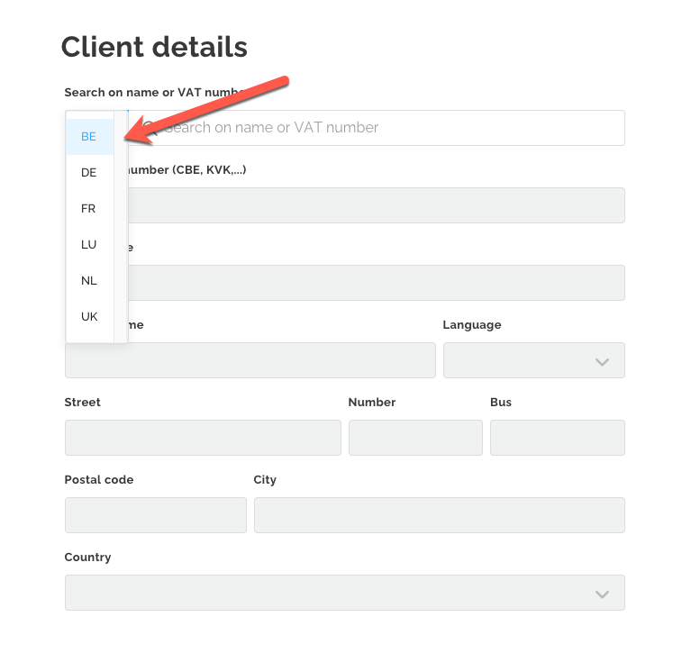 - When creating a new customer, you can enter a foreign VAT number by adjusting the country code in the field shown below.