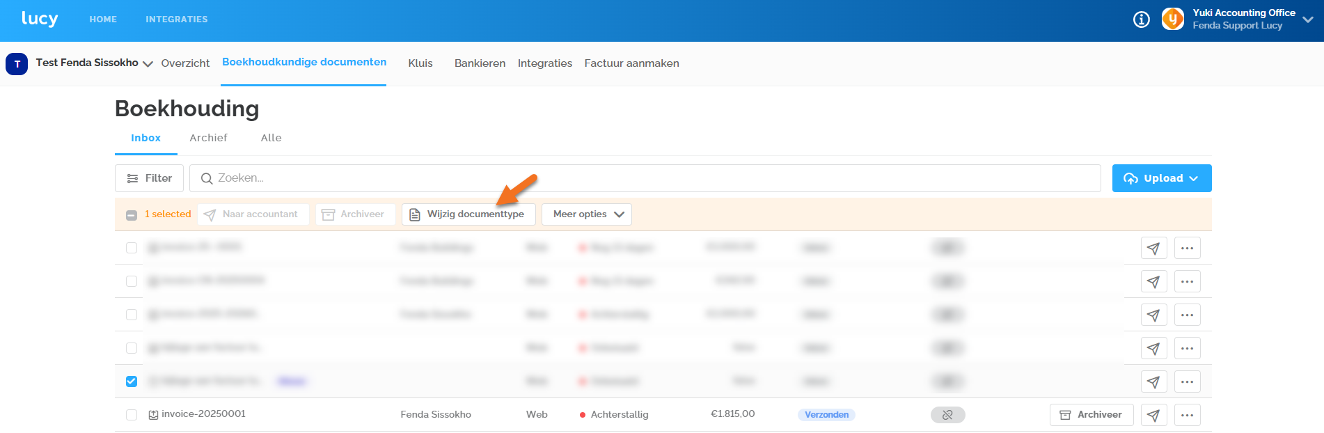 As an accountant, you have the option to assign the correct type to a document from the ‘Accounting Documents’ overview. You can select the document and make the adjustment using the ‘Change Document Type’ button.