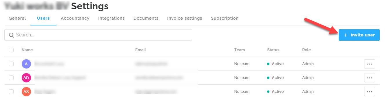 Under the “Users” tab, you can find an overview of all users who have access to your Lucy account. By clicking “+ Invite User”, you can create and invite a new user. Adding an additional user is only possible with Lucy Business and Lucy Business Pro, at a monthly cost of 2.50 euros per month.