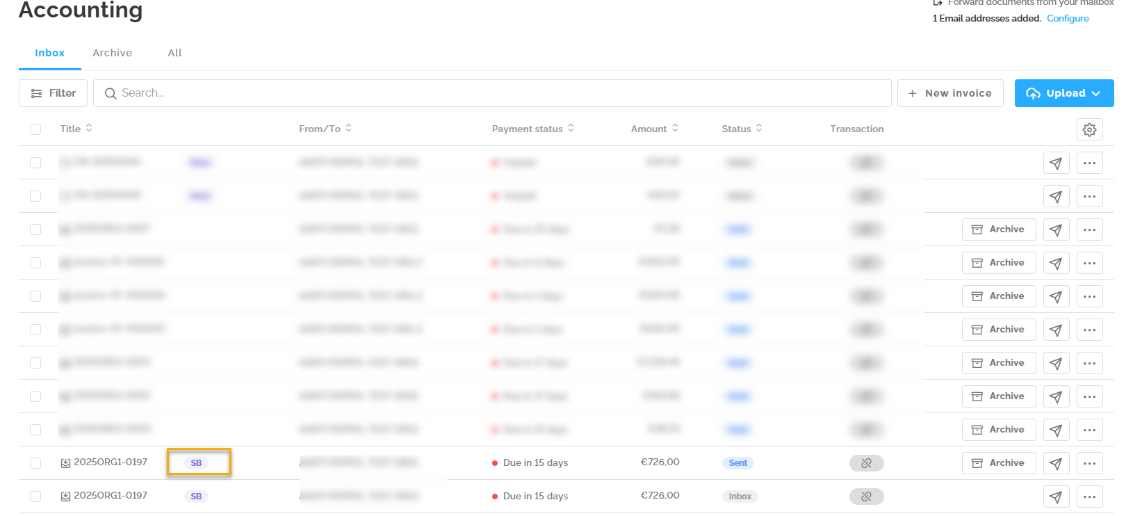 It is now possible to receive self-billing invoices via Peppol in Lucy. Companies that were previously registered to receive Peppol invoices in Lucy are automatically activated to receive self-billing invoices. New accounts in Lucy are also automatically activated for this. In the software's inbox, these invoices are marked with the tag 'SB'.