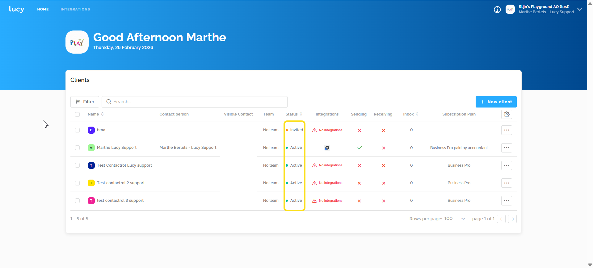 - The file has the status 'Active' and has Trial, Lucy Business, or Lucy Business Pro.