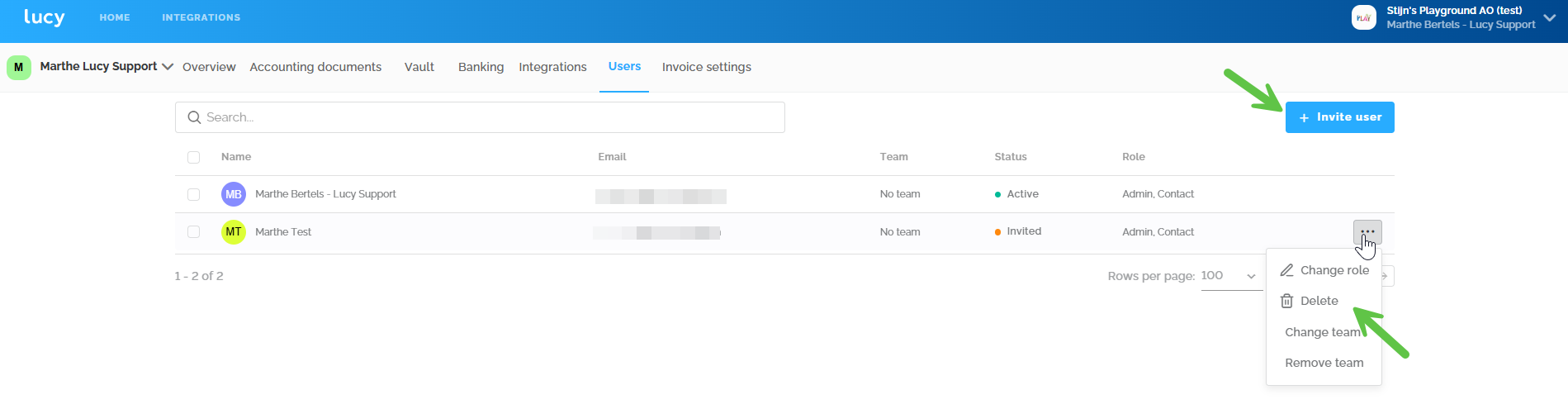 On this page, as an accountant, you can view all users of this administration, delete them, and add new ones. (!) Whether you can do this depends on your administration's status. The file's status can be found in the general overview of your portal.