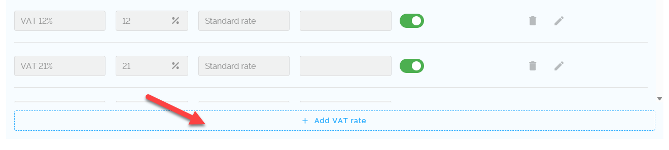 - Click the button "+ Add VAT rate".