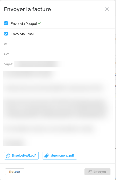 - Vous pouvez également choisir d'envoyer la facture à la fois via Peppol et par e-mail.