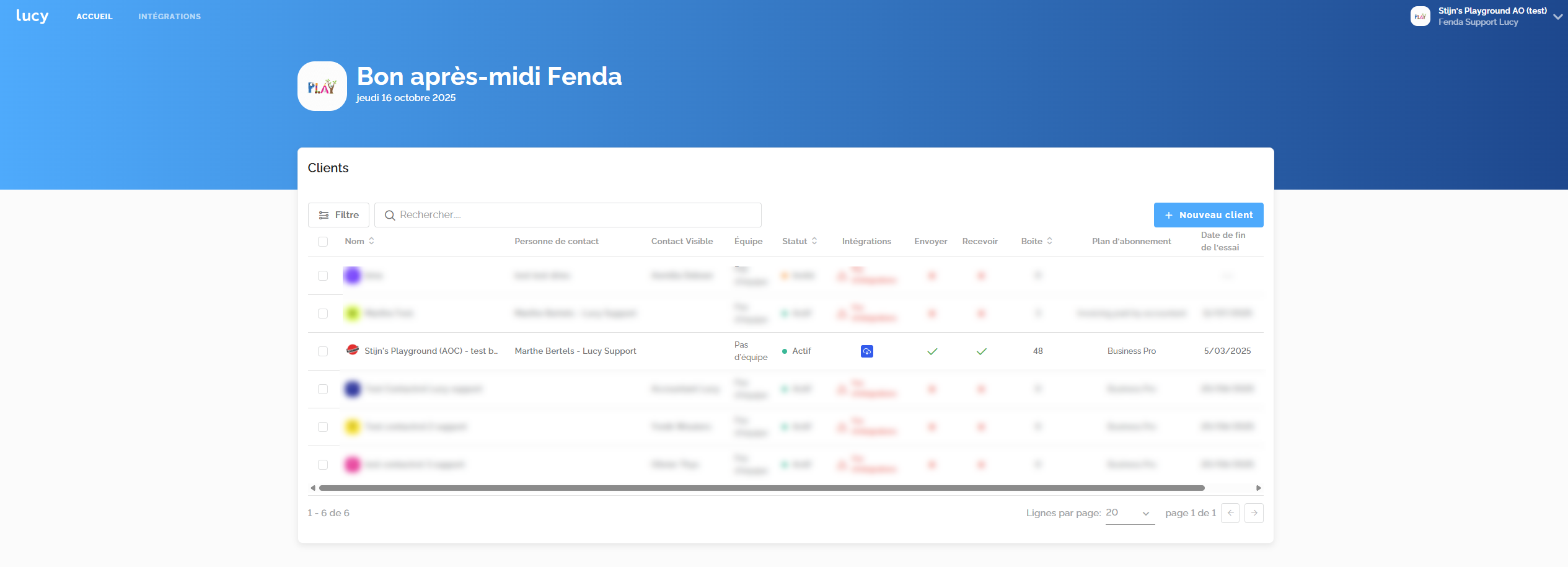 Sur cette page, vous pouvez voir un aperçu complet de tous les clients que vous avez créés. Le tableau de bord vous permet également d’ajouter de nouveaux clients facilement.