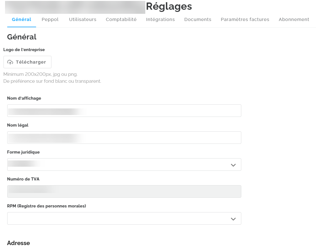 Le numéro de TVA de votre entreprise ne peut pas être modifié ou supprimé; pour des modifications, veuillez contacter l'équipe support. En bas de cet onglet, vous pouvez également trouver les coordonnées de votre entreprise.