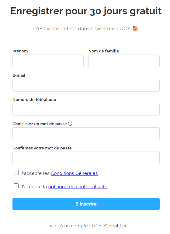 Vous pouvez vous inscrire gratuitement pendant 30 jours en suivant les étapes ci-dessous sur le site Web de Lucy .