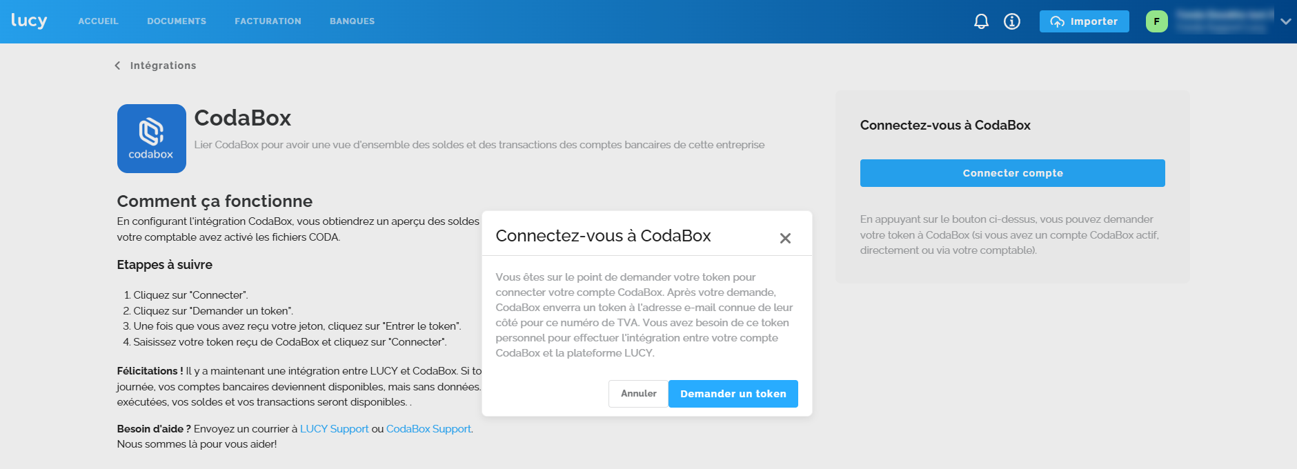 La connexion ne remplace pas le compte Codabox existant lié à votre paquet comptable. Les transactions sont envoyées à Lucy via ce compte Codabox existant.
