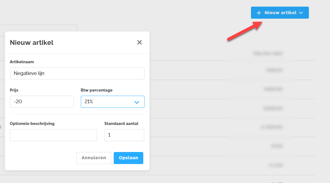 - Het is ook mogelijk om een optionele omschrijving onder een verkoopartikel toe te voegen.