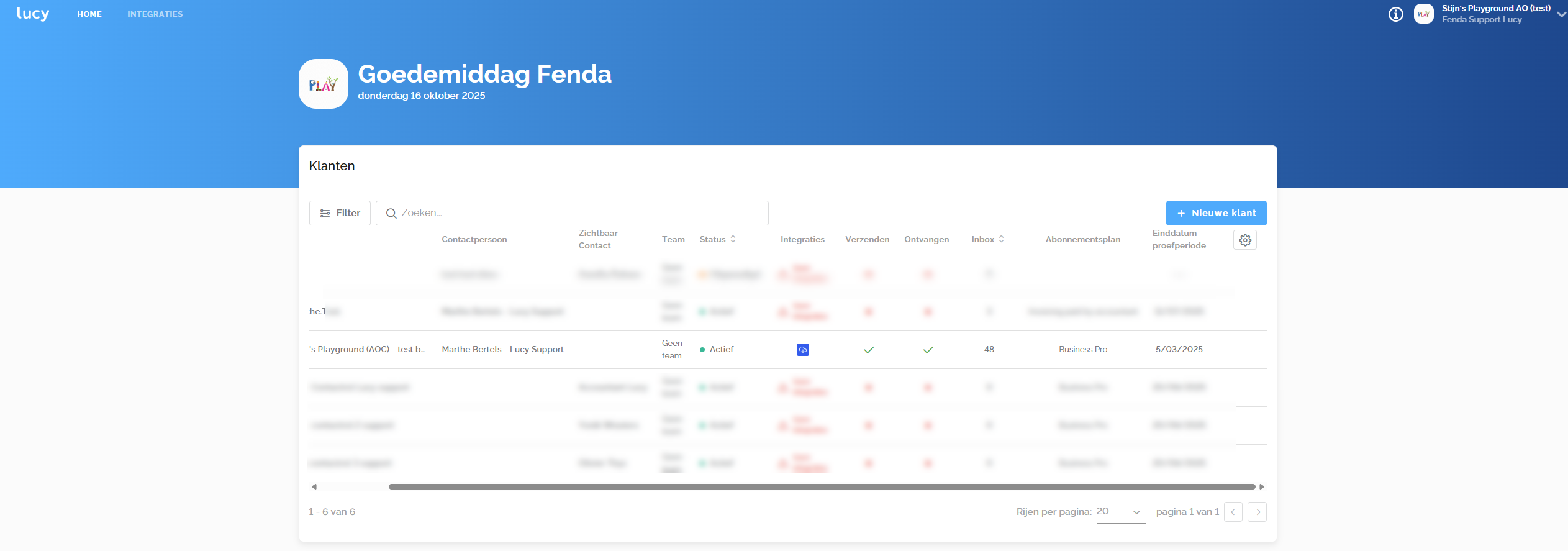 Via het dashboard kan je een overzicht zien van al jouw klanten die je aangemaakt hebt en heb je de mogelijkheid om nieuwe klanten toe te voegen.