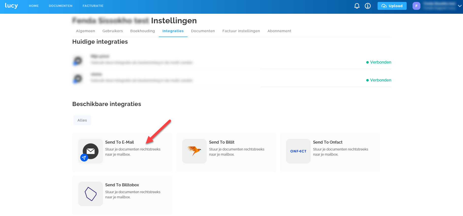 Indien documenten niet zijn aangekomen in het boekhoudpakket en de status 'Mislukt' tonen, kun je deze selecteren en opnieuw versturen met de knop 'Naar accountant'. Documenten die de status 'Verzonden' hebben, maar niet in het boekhoudpakket zijn binnengekomen, kunnen momenteel niet opnieuw worden verzonden. In dit geval kun je contact opnemen met Support. Als alternatief kan de klant het e-mailadres van het boekhoudpakket als e-mailbestemming instellen, zodat deze documenten opnieuw kunnen worden verzonden via de Multisender. Enkel de klant kan dit instellen via Instellingen > Integraties:
