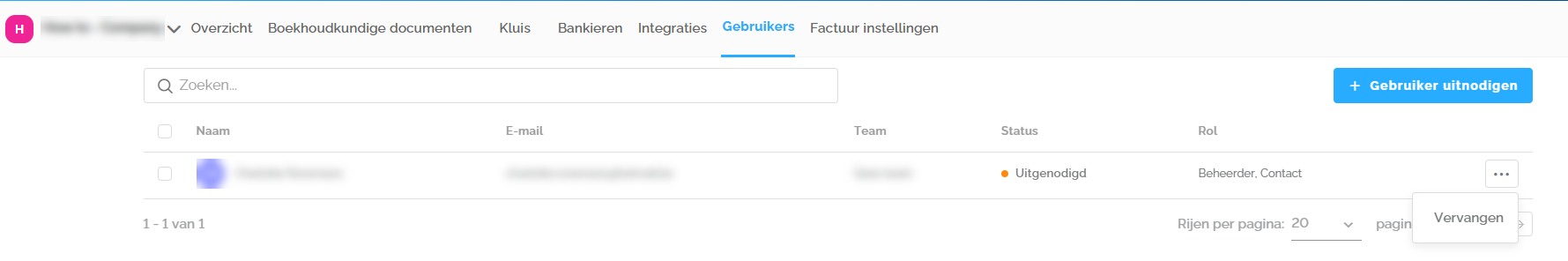 Wanneer een klant een uitnodigingsmail ontvangt, krijgt hij de status Uitgenodigd. De link in deze e-mail is 21 dagen geldig. Na deze periode kunt u de klant een nieuwe uitnodiging sturen door op de knop Opnieuw verzenden te klikken.