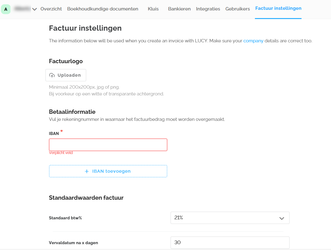 In de factuur instellingen kan jij je klant helpen de nodige opties te configureren om te beginnen met factureren in Lucy.