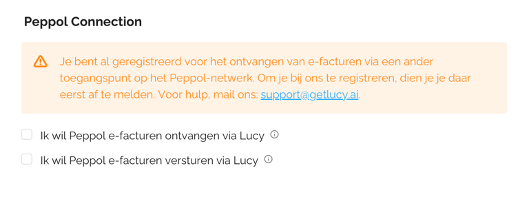 Je kan bedrijf op elk gewenst moment uitschrijven uit het Peppol-netwerk via Lucy door de vakjes uit te zetten.Contactpersoon wijzigen