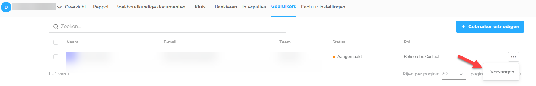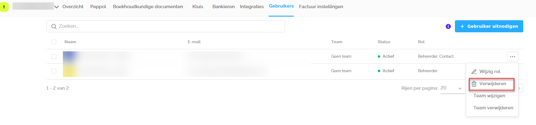 - Trial, Business of Business Pro: Je kunt zelf de juiste persoon toevoegen via de knop Gebruiker uitnodigen. Zodra de nieuwe gebruiker is toegevoegd, kun je de foutieve of oude gebruiker verwijderen.