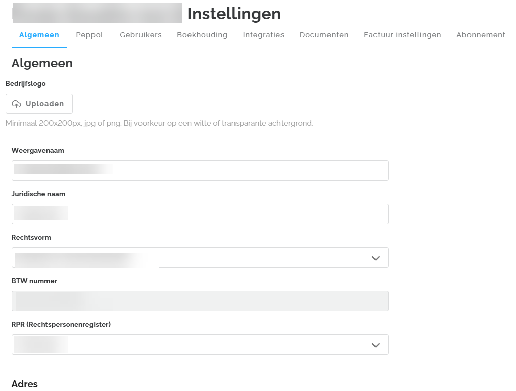 Het btw-nummer van je bedrijf kan echter niet gewijzigd of verwijderd worden; voor aanpassingen hieraan moet contact worden opgenomen met de supportafdeling. Onderaan deze tab vind je ook de adresgegevens van je onderneming.
