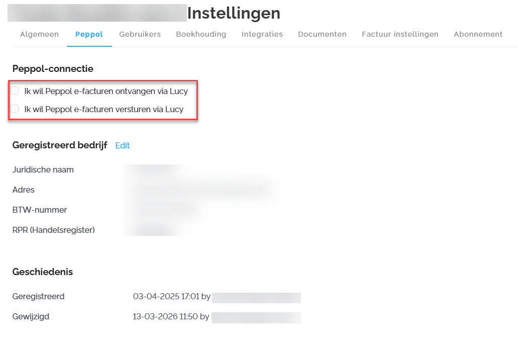 Je kunt je registratie op het Peppol-netwerk ook volledig zelf beheren binnen Lucy. Dit is handig als je wil overstappen naar een andere software of als je de registratie nog moet opstarten.