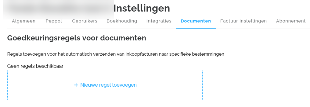 Onder de tab Documenten kan je regels toevoegen voor het automatisch verzenden van aankoopfacturen naar specifieke bestemmingen.
