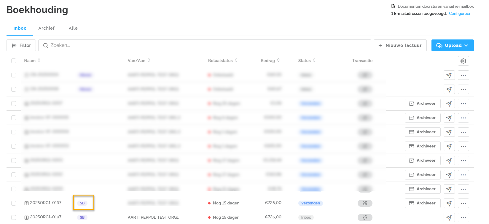 Het is nu mogelijk om self-billing facturen via Peppol in Lucy te ontvangen. Bedrijven die eerder zijn aangemeld voor het ontvangen van Peppol-facturen in Lucy worden automatisch geactiveerd voor self-billing facturen. Ook nieuwe dossiers in Lucy worden hier automatisch voor geactiveerd. In de inbox van de software worden deze facturen gemarkeerd met de tag 'SB'.