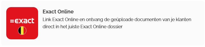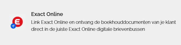 Door de Exact Online integratie te configureren, ontvangt u de door uw klanten doorgezonden documenten direct in de digitale brievenbussen van hun dossiers.