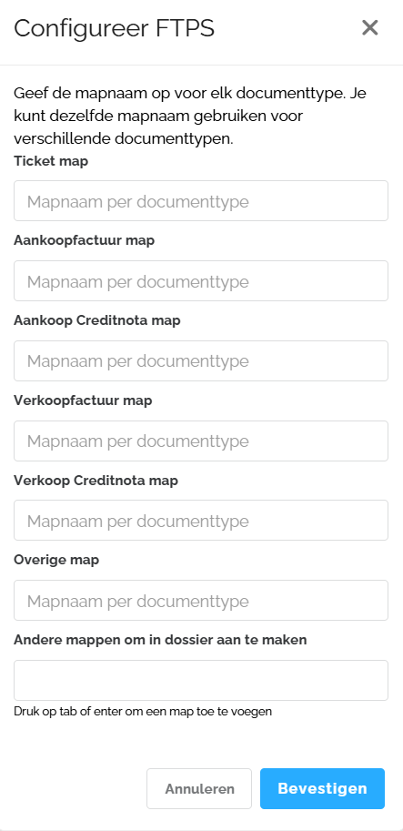 Na deze stap, kan je een mapnaam per documenttype instellen.
