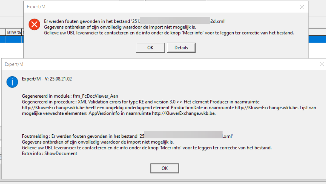 - De documenten komen toe in mijn boekhoudpakket, maar ik krijg daar de foutmelding dat het document een verkeerd formaat is.