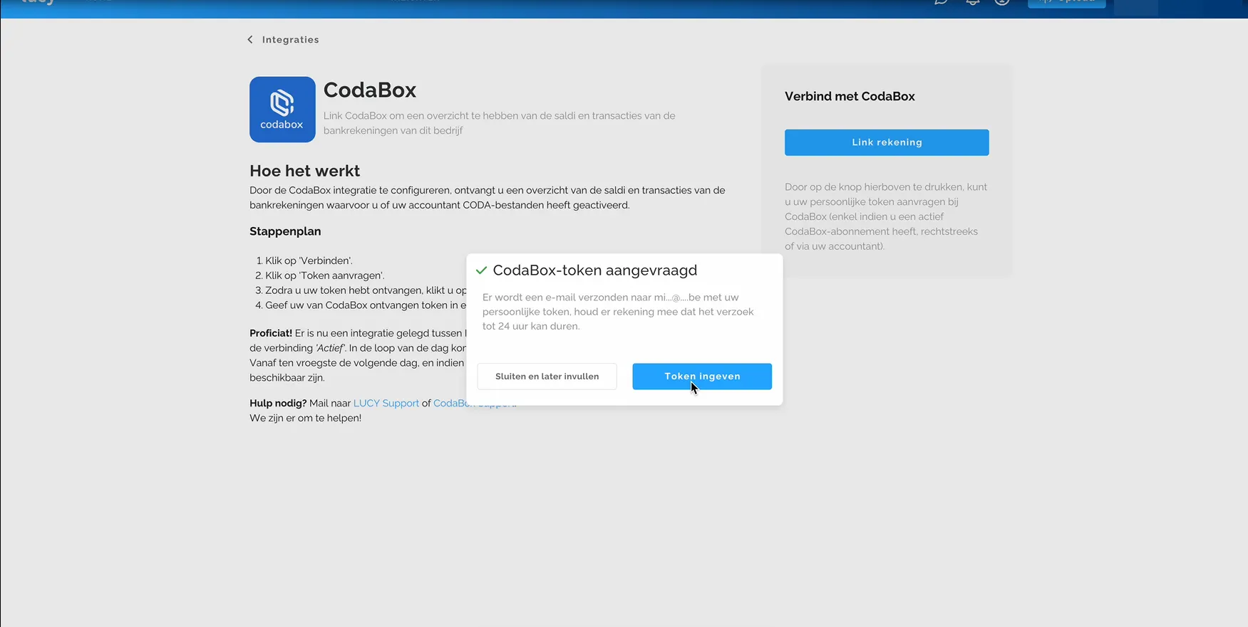 Als er een bestaand Codabox-account voor het btw-nummer aanwezig is, kan je hiervoor een token aanvragen in Lucy.