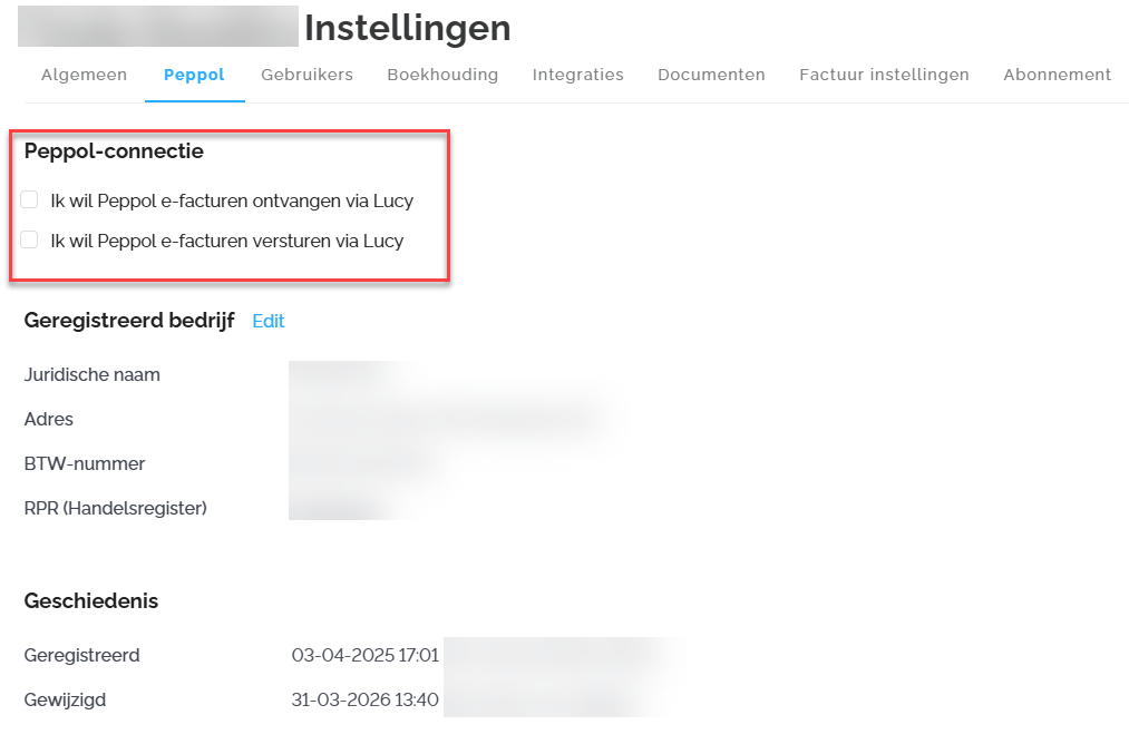 Het is belangrijk om je in Lucy van het Peppol-netwerk af te melden, zodat je je bedrijf op Peppol kan registreren bij een andere software.