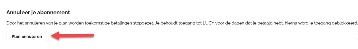 - Ga naar Instellingen bij het onderdeel Abonnement en klik onderaan op “Plan annuleren”.