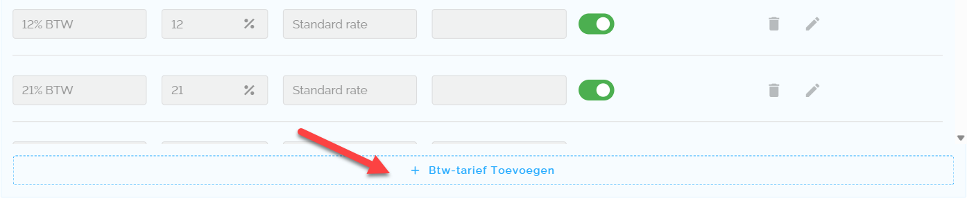 - Klik op de knop “+ Btw-tarief Toevoegen”.